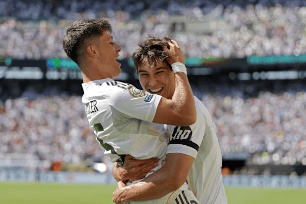 今天凌晨,皇马3-2力克多特蒙德杀入世俱杯四强,21岁的贡萨洛·加西亚再次化身关键先生。开场10分钟一记凌空垫射破门,将个人本届赛事数据刷新为5场4球1助攻,直接复刻了C罗2016年的神迹。而大放异彩的同时,却让另一位天才的未来陡然生变:巴西新星恩德里克的皇马生涯,正因加西亚的爆发进入倒计时。